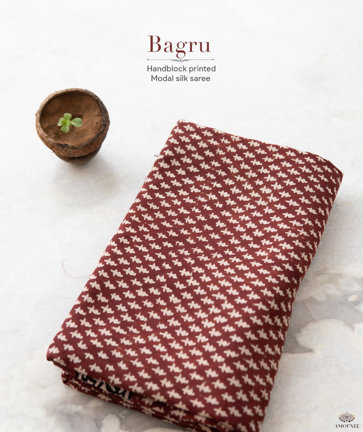Bagru and Sanganeeri print \n \nAtlas a 400 year old craft that has been a home to the chippa community- a clan whose name comes from a Gujarati work meaning ‘to print’. Just a few hours drive from the magnificent city Jaipur- resides a village called Bagru. Where the village welcomes you with a rhythmic beat of blocks and the air smells of drying fabrics. \n \nThe painstakingly laborious but anciently beautiful process takes around 20 days for a fabric to be completed. The process includes washing - to get rid of the fabric impurities and then Harda is done which leaves a yellow tint. Think of it as a primer. Then the fabric is dried, where the fabric is laid flat in the sun. Then once the colours are mixed - the printing is started. The printing involves three steps, where the outline is printed first with the block and then the insides. Once the printing is completed, the fabric is left for drying. The dried fabric is the washed in cold water and then boiled with alizarine which gives red colour and acts as fastner. \n \nDifference between Sanganeri and Bagru style of printing \n \nThe main distinguishing feature between Sanganer and Bagru printing is that Sanganer print is usually done on a white ground, whereas Bagru prints are printed on an Indigo or a dyed background. Local water also has its effects. In the water of Saanganer, the results of block printing are very rich dark shades of colour, while at Bagru one finds a reddish tinge in the block printed textiles. Water was (intentionally being used in the past tense) abundant in Sanganer; due to which dyeing, printing as well as washing could be done very easily. In contrast at Bagru, where water is comparatively scarce, ‘Dhabu’ resist printing and indigo work is practised more often. \n \nTraditionally, motifs printed at Bagru are large with bold lines, as compared to Sanganer, where sombre colours and fine lines, intricate detailing are practiced. Sanganeri motifs are based on nature, while the motifs of Bagru are more often geometric.