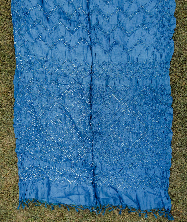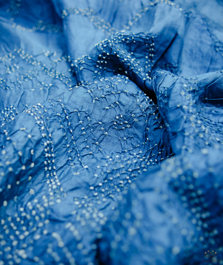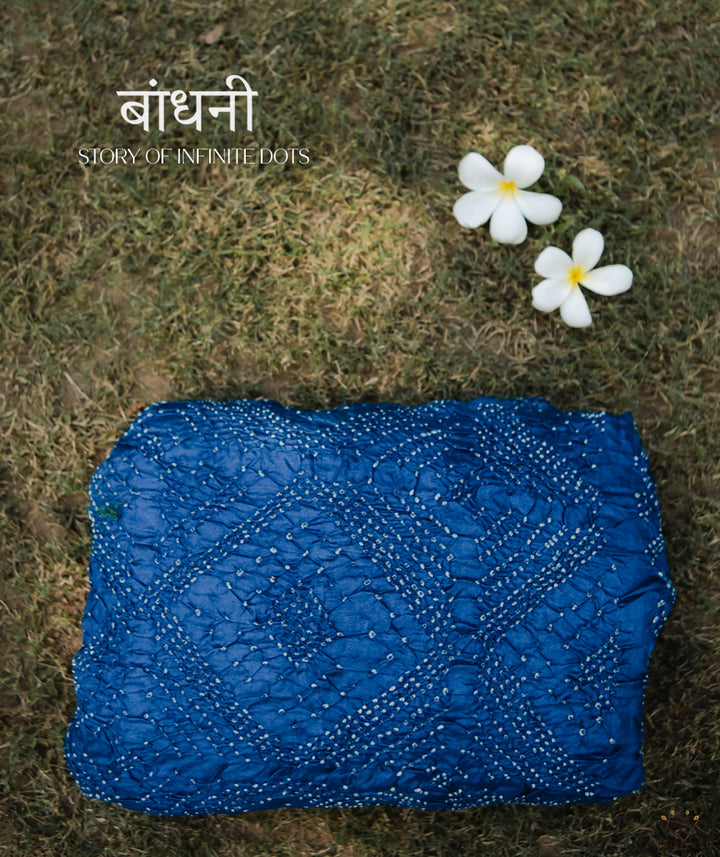 Bandhini silk sarees are one of the oldest form of tie & die art which began about 5000 years ago. The art of Bandhani is as exciting as it’s history. The fabric to be dyed is tied very tightly at different points in knots and then dyed with extraordinary colors. When this tied cloth goes for dyeing, these threads or knots doesn’t let that part catch color & allows it to stay white or whatever color the cloth has. Once the cloth is dyed, it is left for drying in open air. Dyeing is accomplished by the tie-resist method where the patterns are made up of innumerable dots and weaves respectively. Usually men do the dyeing while women do the tying, which is most painstaking with each dot being as tiny as a pin-head. The cloth is first washed and bleached to prepare it for absorbing the dyes. After this, it is then sent to the bandhani, the women who do the tying, lift small portions of the fabric and tightly tie a thread around it. The more minuscule the raised Bandhani – tied textile fabric, the finer the bandhana. The tied textile is then dipped in a light colour first while the tied areas retain the original ground colour. If a second dye is required, the areas to be retained in the first dye are tied for resist and the cloth dipped in a darker dye. This process is repeated, if several colours are to be combined. Drying can take some time depending upon the weather conditions. In monsoon, it takes around 2 days to dry while in summer it takes only 4-5 hours. In winter it takes around 6-7 hours for drying.