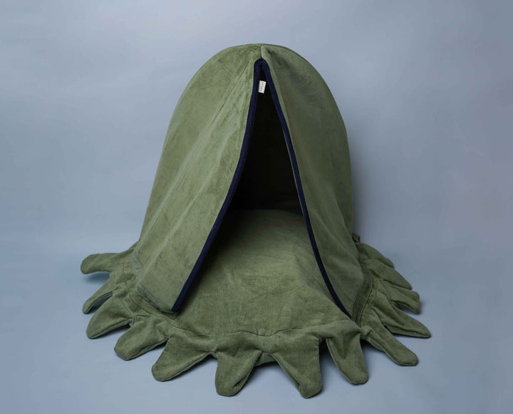 This Green Octopus style bed is made of soft corduroy cotton. Instead of polyfill It has a grain-based filling to keep it safe for pets as well as the environment. Grain-based beds are orthopedic providing a lot of comfort ergonomically for a sound sleep. Suitable for all cat breeds and puppies.