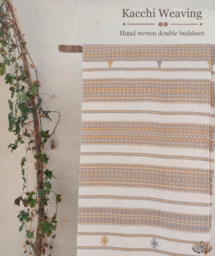 Kacchi Handwoven Double Bedsheet with 2 cushion covers