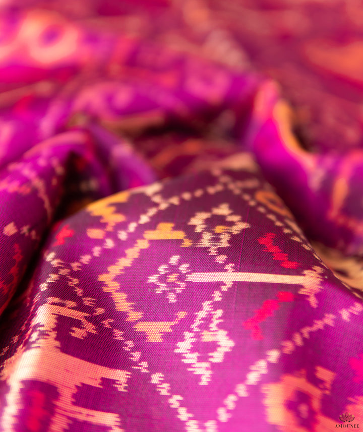 Patan Patola is the most prominent product of double ikat from Gujarat. The last few decades have seen Rajkot and its neighbouring villages produce sarees similar in design to Patan Patola but in single ikat – using the technique of either warp or weft, unlike double ikat which employs the use of both. These are locally known as Rajkot Patola.