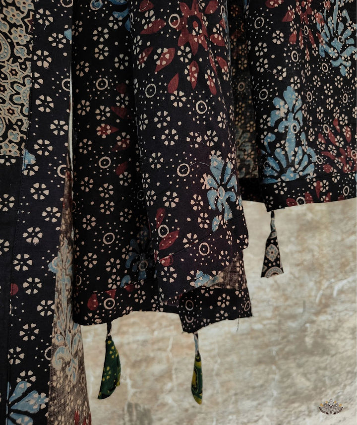 This product is handcrafted and may have slight irregularities that are a natural outcome of human involvement in the process. This collection looks at a blend of crafts of Rajasthan in a very crafty yet subtle form. The crafts of Ajrakh, Applique, and Patchwork are used.