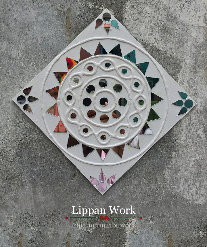 Mud and mirror work is known as Lipan Kaam. It is a traditional mural craft of Kutch. It is also called as Chittar Kaam. The origins of Lipan Kaam are unknown.