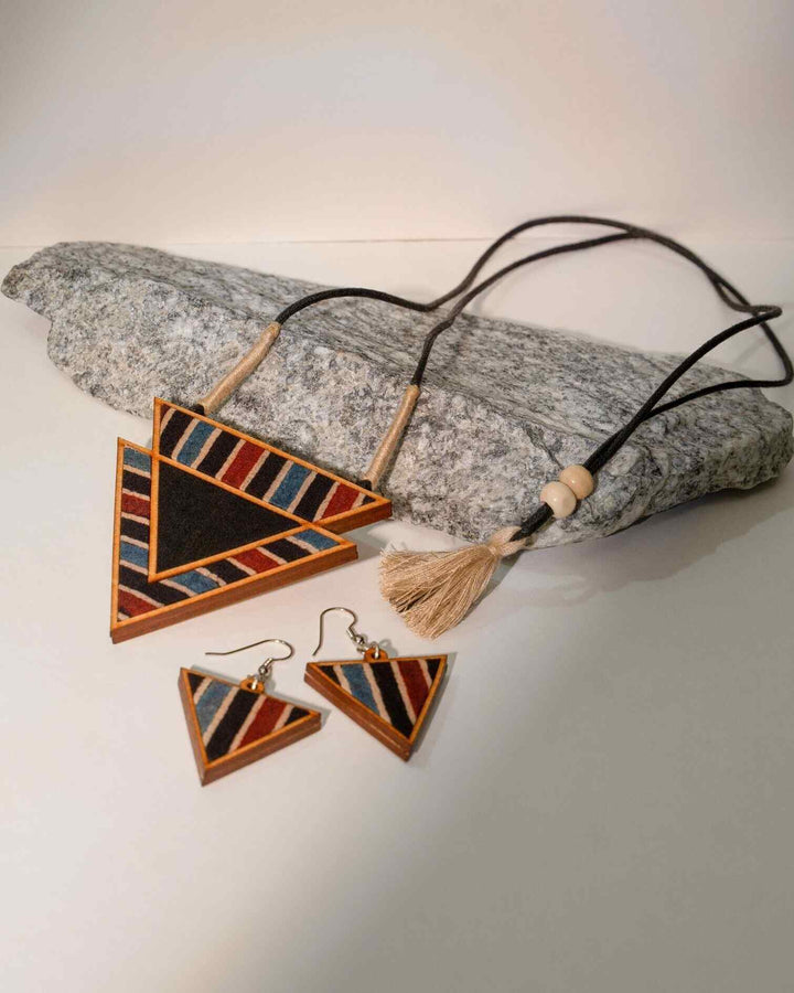 The fashion industry generates a huge amount of cutting waste. About 15% of fabric gets wasted during the cutting of the garment. In this collection, we've Repurposed this waste into beautiful fabric, creating lovely jewelry pieces and contributing to a sustainable society.