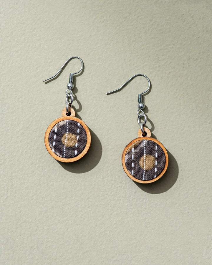 WHE Brown Fabric and Repurposed Wood Earrings