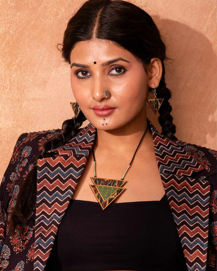 This product is made by framing beautiful fabrics on Recycled MDF Frames. The fabric comes from waste generated during garment cutting. MDF board is actually made by compressing wood dust generated in furniture production. We cut the board in desired contemporary design and then frame fabrics into it. The collection is a perfect assortment for your formal wear.