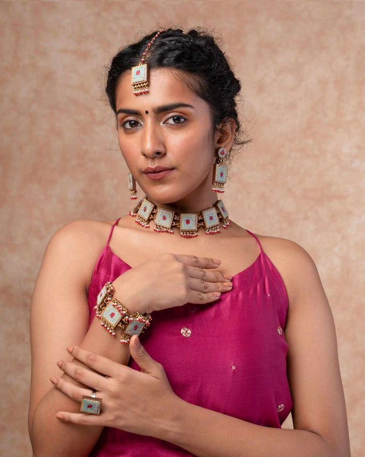 The fashion industry generates a huge amount of cutting waste. About 15% of fabric gets wasted during the cutting of the garment. In this collection, we've Repurposed this waste into beautiful fabric, creating lovely jewelry pieces and contributing to a sustainable society.