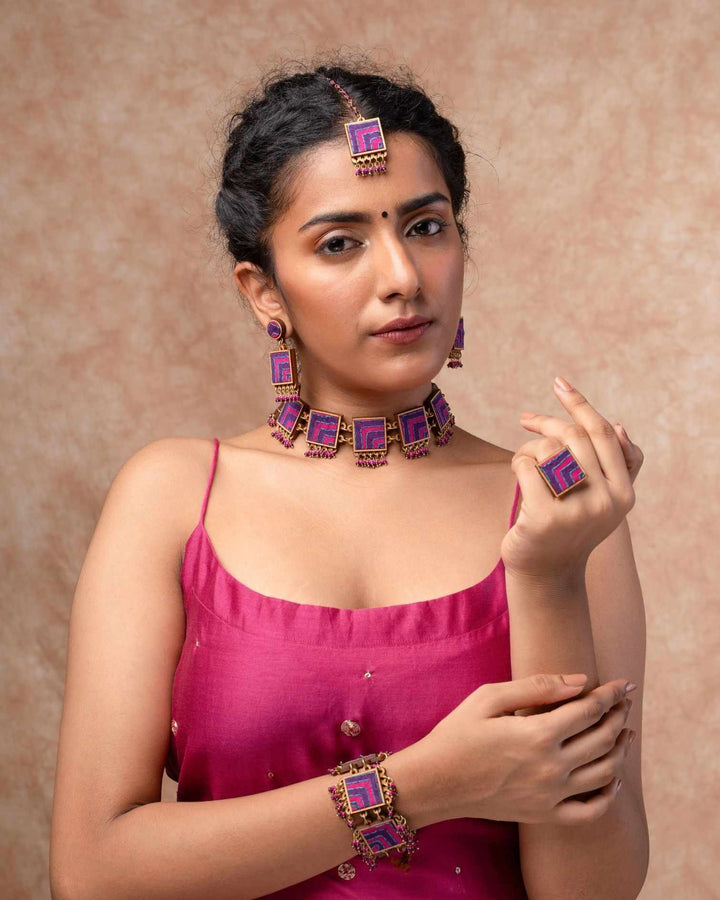 The fashion industry generates a huge amount of cutting waste. About 15% of fabric gets wasted during the cutting of the garment. In this collection, we've Repurposed this waste into beautiful fabric, creating lovely jewelry pieces and contributing to a sustainable society.