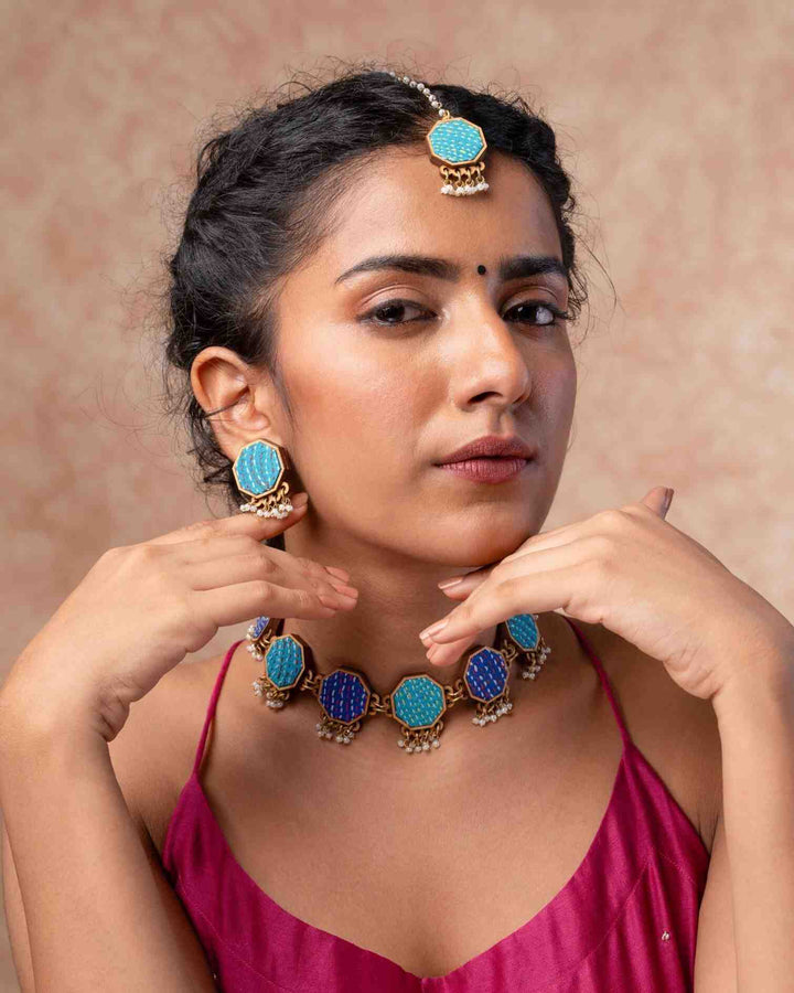 The fashion industry generates a huge amount of cutting waste. About 15% of fabric gets wasted during the cutting of the garment. In this collection, we've Repurposed this waste into beautiful fabric, creating lovely jewelry pieces and contributing to a sustainable society.
