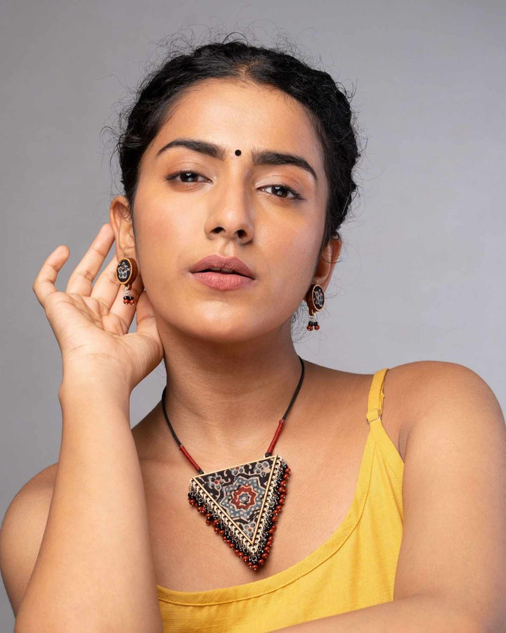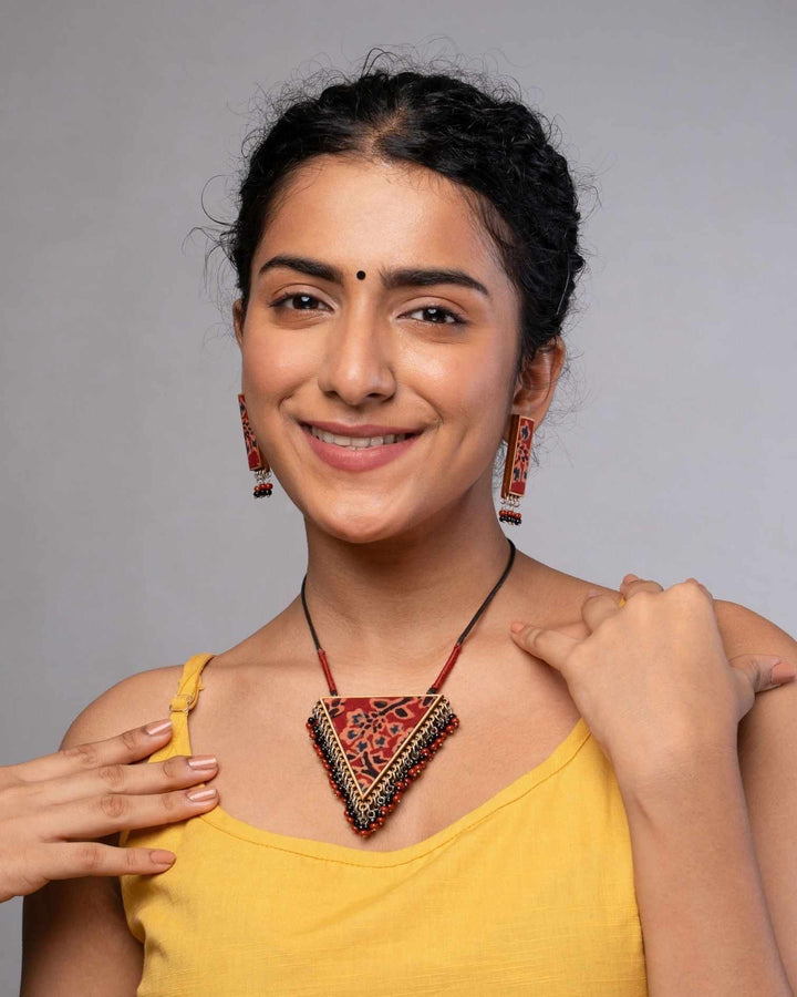 The fashion industry generates a huge amount of cutting waste. About 15% of fabric gets wasted during the cutting of the garment. In this collection, we've Repurposed this waste into beautiful fabric, creating lovely jewelry pieces and contributing to a sustainable society.