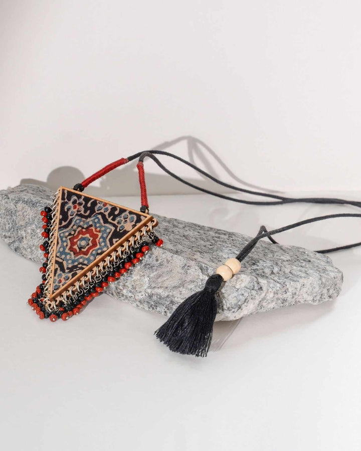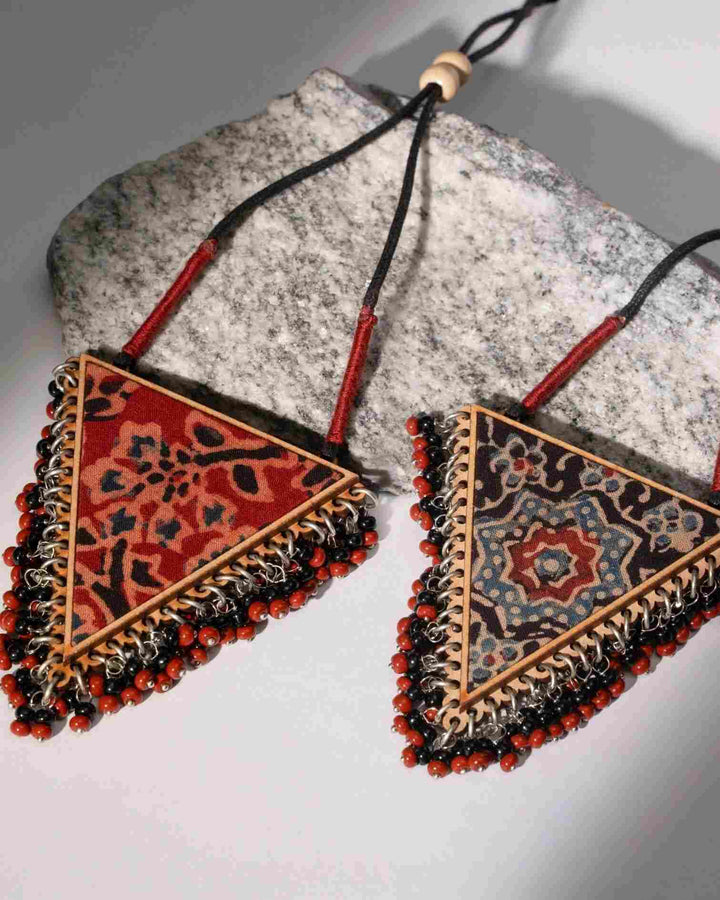 WHE Two in One Multicolor Repurposed Fabric and Wood Triangle Pendant