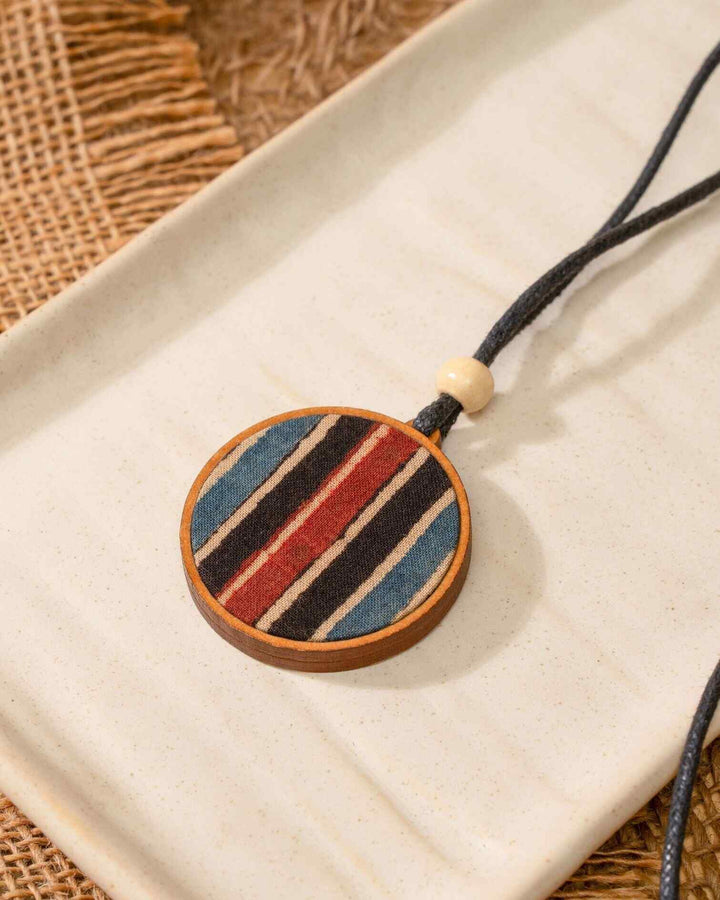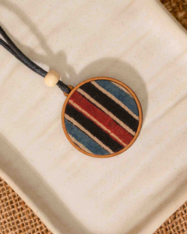 WHE Unisex Blue Round Repurposed Fabric and Wood Pendant