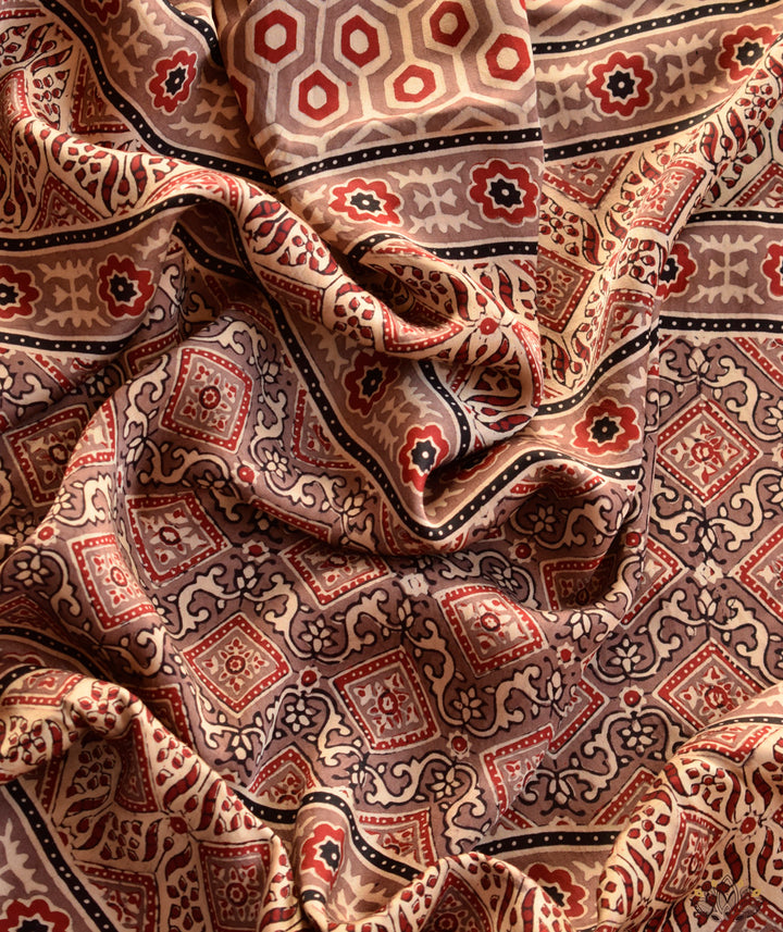 Ajrakh Modal Silk Hand Block Printed Saree