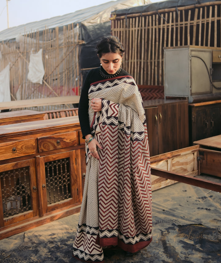 Bagru and Sanganeeri print Atlas a 400 year old craft that has been a home to the chippa community- a clan whose name comes from a Gujarati work meaning ‘to print’. Just a few hours drive from the magnificent city Jaipur- resides a village called Bagru. Where the village welcomes you with a rhythmic beat of blocks and the air smells of drying fabrics. The painstakingly laborious but anciently beautiful process takes around 20 days for a fabric to be completed. The process includes washing - to get rid of the fabric impurities and then Harda is done which leaves a yellow tint. Think of it as a primer. Then the fabric is dried, where the fabric is laid flat in the sun. Then once the colours are mixed - the printing is started. The printing involves three steps, where the outline is printed first with the block and then the insides. Once the printing is completed, the fabric is left for drying. The dried fabric is the washed in cold water and then boiled with alizarine which gives red colour and acts as fastner. Difference between Sanganeri and Bagru style of printing. The main distinguishing feature between Sanganer and Bagru printing is that Sanganer print is usually done on a white ground, whereas Bagru prints are printed on an Indigo or a dyed background. Local water also has its effects. In the water of Saanganer, the results of block printing are very rich dark shades of colour, while at Bagru one finds a reddish tinge in the block printed textiles. Water was (intentionally being used in the past tense) abundant in Sanganer; due to which dyeing, printing as well as washing could be done very easily. In contrast at Bagru, where water is comparatively scarce, ‘Dhabu’ resist printing and indigo work is practised more often. Traditionally, motifs printed at Bagru are large with bold lines, as compared to Sanganer, where sombre colours and fine lines, intricate detailing are practiced. Sanganeri motifs are based on nature, while the motifs of Bagru are more often geometric.