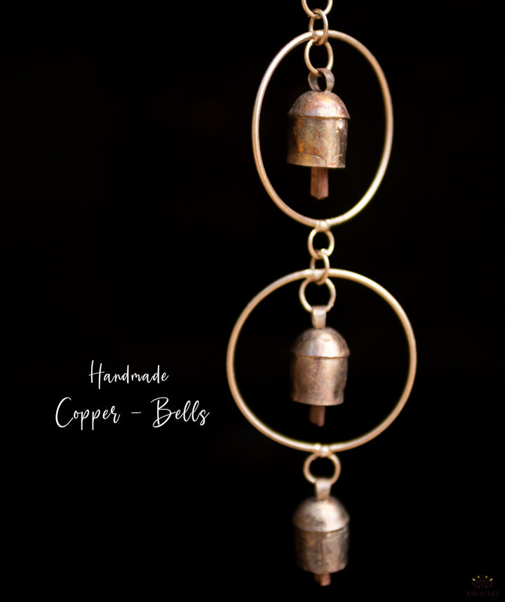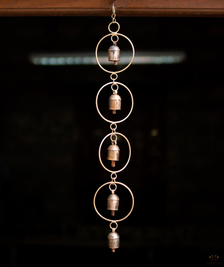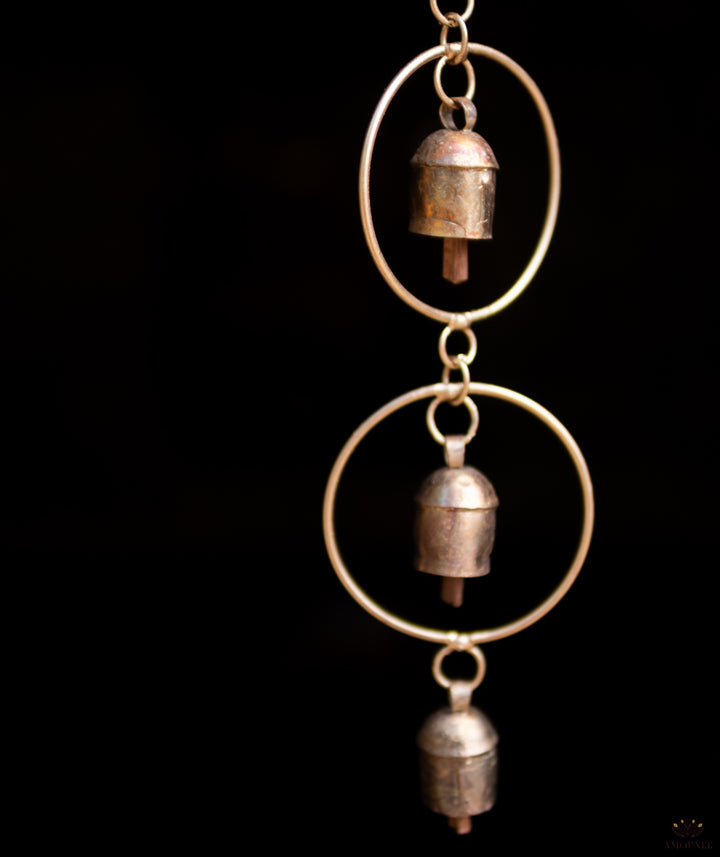 Bell Metal - the tradition of making copper bell metal in Bhuj has been practiced from a long past. Different stages of process are involved for production of the product. Initially Waste metal is collected from the community as well as from nearby industry. The artisan cuts the scraps into rectangular strip and hammers it into a hollow cylinder. For the cap of the bell, artisan draws a circle of required size on the metal sheet using a compass. The circle is cut and hammered to obtain a dome shape. The circular dome is then fitted on to the cylinder and hammered to attain the bell shape. A metal strip is bent and attached to the top part so the bell can be hung. Once the bell is shaped, women artisan dips the bell into water. After dipping, the wet shaped bells are covered with the mixture made of brass, copper, zinc and iron powder and kept to dry.