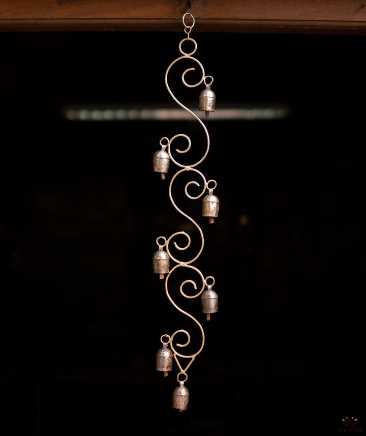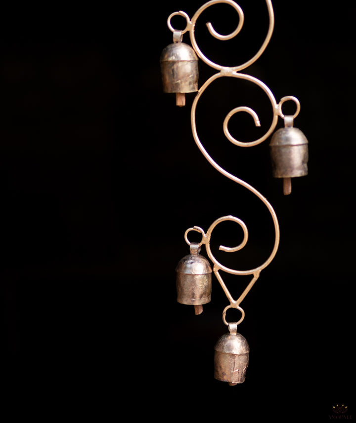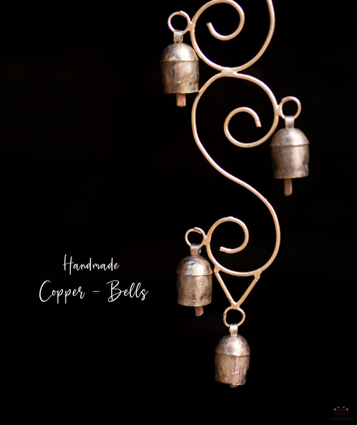 Bell Metal - the tradition of making copper bell metal in Bhuj has been practiced from a long past. Different stages of process are involved for production of the product. Initially Waste metal is collected from the community as well as from nearby industry. The artisan cuts the scraps into rectangular strip and hammers it into a hollow cylinder. For the cap of the bell, artisan draws a circle of required size on the metal sheet using a compass. The circle is cut and hammered to obtain a dome shape. The circular dome is then fitted on to the cylinder and hammered to attain the bell shape. A metal strip is bent and attached to the top part so the bell can be hung. Once the bell is shaped, women artisan dips the bell into water. After dipping, the wet shaped bells are covered with the mixture made of brass, copper, zinc and iron powder and kept to dry.
