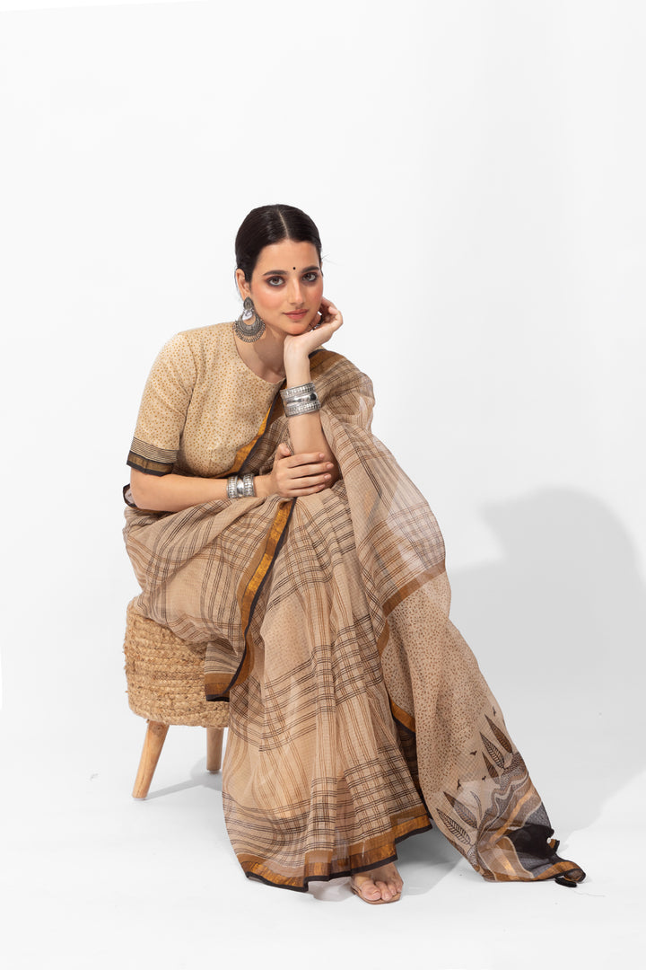 Exclusive Amounee Bagru Hand Block Printed Kota Saree