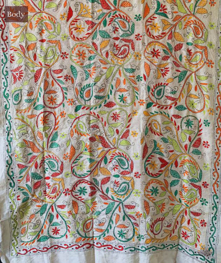 Exclusive Amounee Kantha Embroidered Tussar Silk Dupatta