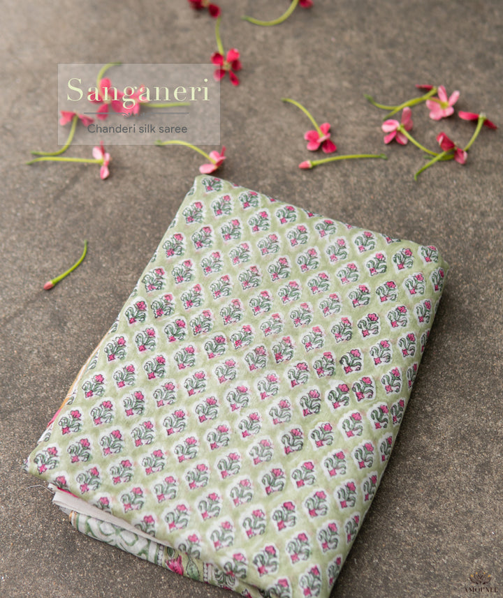 The main distinguishing feature between Sanganer and Bagru printing is that Sanganer print is usually done on a white ground, whereas Bagru prints are printed on an Indigo or a dyed background. Local water also has its effects. In the water of Saanganer, the results of block printing are very rich dark shades of colour, while at Bagru one finds a reddish tinge in the block printed textiles. Water was (intentionally being used in the past tense) abundant in Sanganer; due to which dyeing, printing as well as washing could be done very easily. In contrast at Bagru, where water is comparatively scarce, ‘Dhabu’ resist printing and indigo work is practised more often.