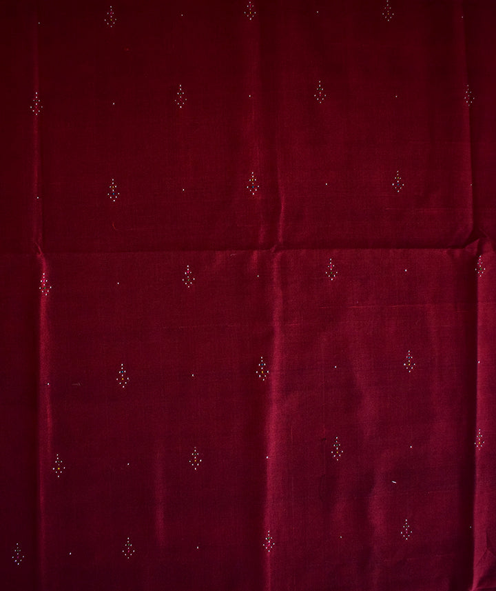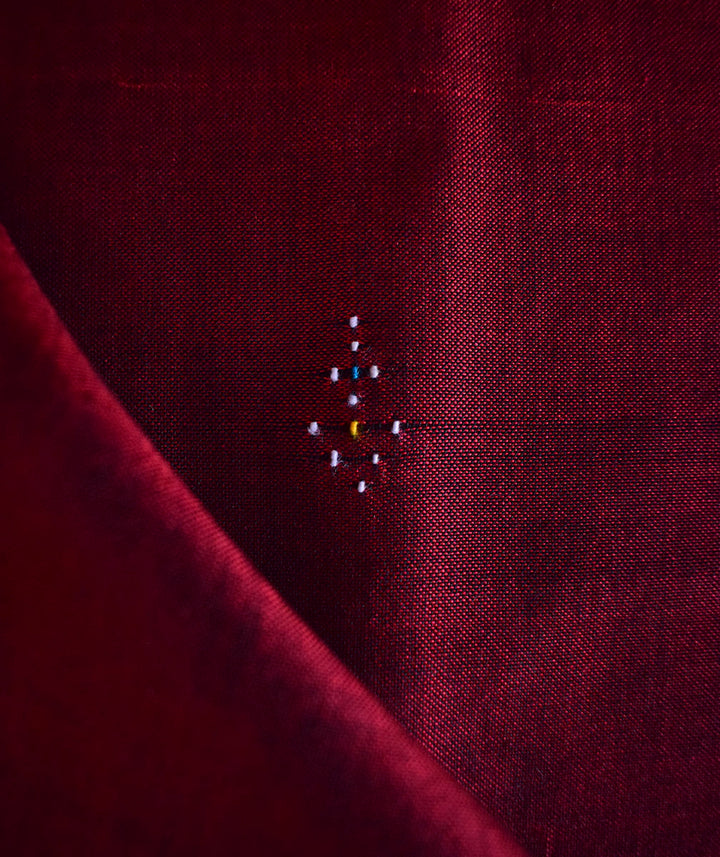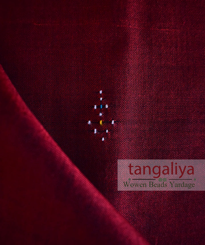Tangaliya cotton Yardage: \n \nTangaliya cotton yardage is one of the 100 varieties of product that can be made through using the craft Tangaliya. Its a handwoven process in which a weaver painstakingly goes through the 20 days process with the same amount of love and enthusiasm. As this product is hand woven and it might have slight irregularities that are a natural outcome of the human involvement in the process. \n \nAbout: \n \nTangaliya is 700 years old traditional hand weaving technique. Legend tells us that centuries ago, in the stark landscape of Saurashtra, a Bharwad man married a woman from the weaver community amidst great opposition from both sides. Nevertheless, it was a marriage that would forever influence the rich tapestry of Indian craft. The children born to them were known as Dangasia, and they created the art of Tangaliya weaving. \n \nTangaliya weaving, also known as Daana weaving is practiced in Surendranagar district of Gujarat. This form of weaving not only requires high skill but also an eye for accuracy. The Tangaliya shawl — which uses a unique weaving technique and was almost on the verge of extinction— has been given GI (Geographical Indications) recognition by the Central government. \n \nTangaliya is a labor-intensive and painstaking process. Contrasts colored threads are twisted onto a group of four to five threads of Warp, creating dana, or beadwork. The fabric is constructed in plain weave. The geometric patterns give the impression of delicate embroidery but are actually weaving. The weavers’ fingers sense exactly the right number of warp threads and twist extra weft around them. The result is a glorious geometric pattern, tiny, white dots lighting up rich, dark fabrics. The motif vocabulary of Daana weaving mainly constitutes of the elements present in the community’s environment. Some examples are peacock (mor), plant (jhaad), Naughara, and many more.