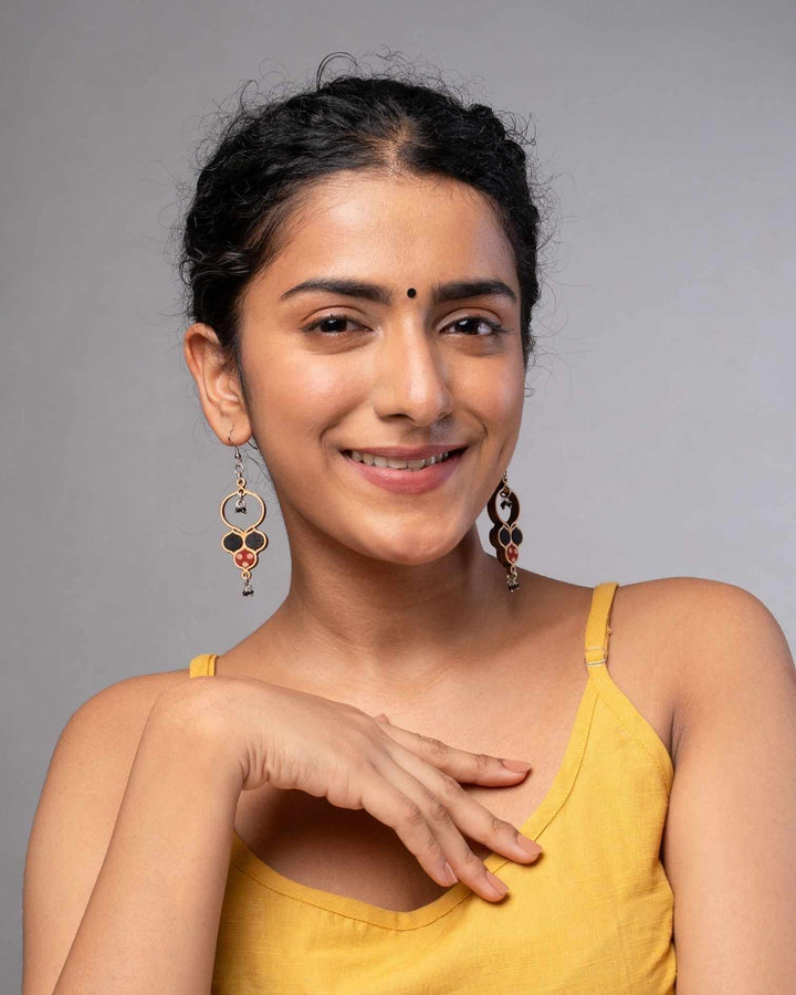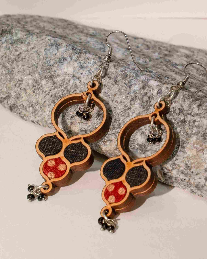 WHE Ajrakh Black Repurposed Fabric and Wood Round Danglers