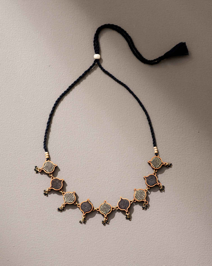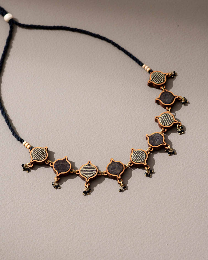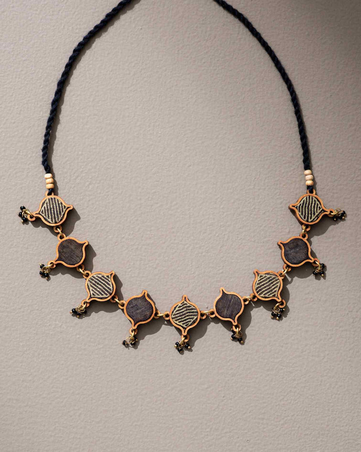 WHE Black Festive Upcycled Fabric and Repurposed Wood Choker Necklace