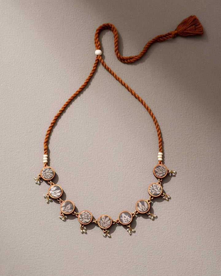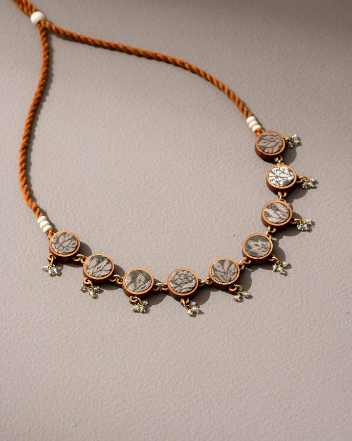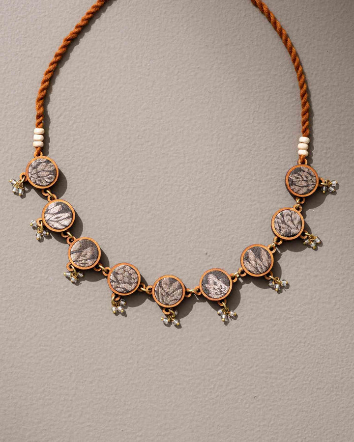 WHE Brocade Festive Upcycled Fabric and Wood Adjustable Choker Necklace