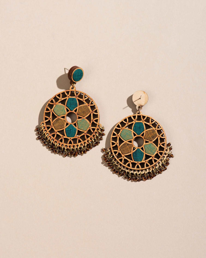 WHE Green Wheel Upcycled Fabric and Repurposed Wood Earrings